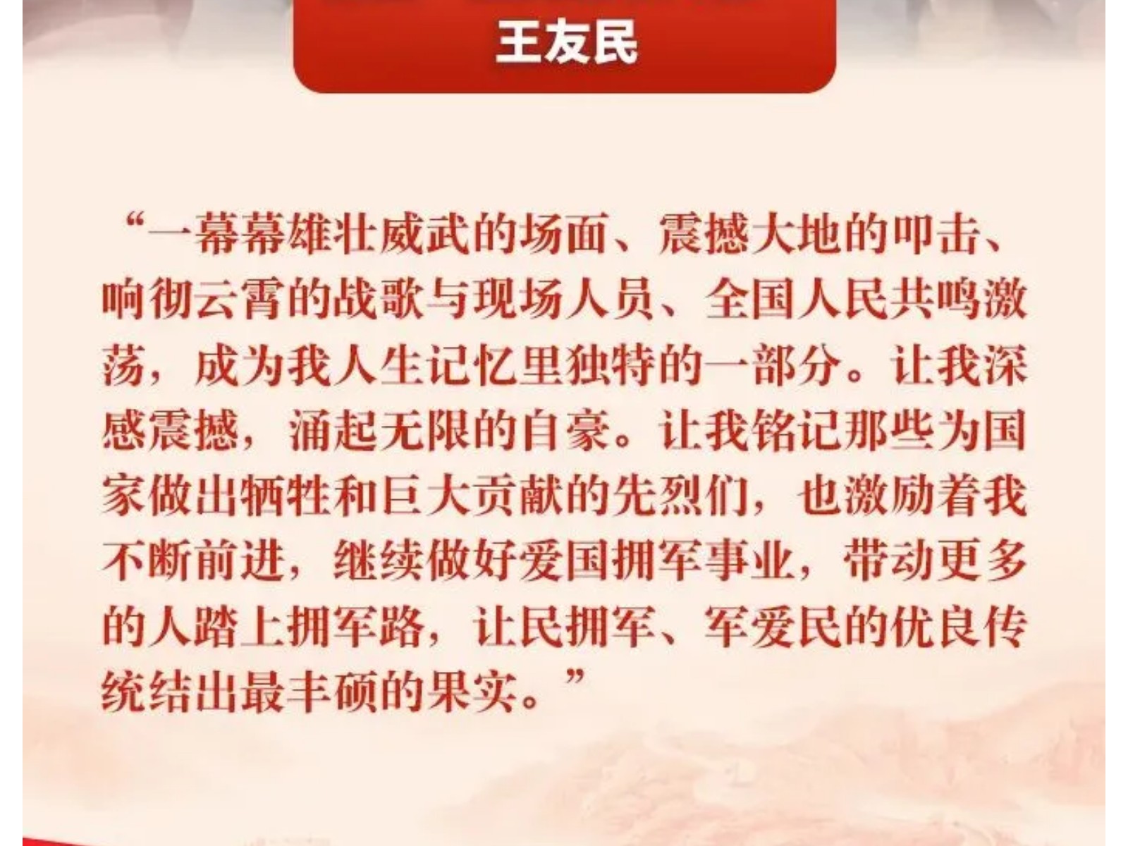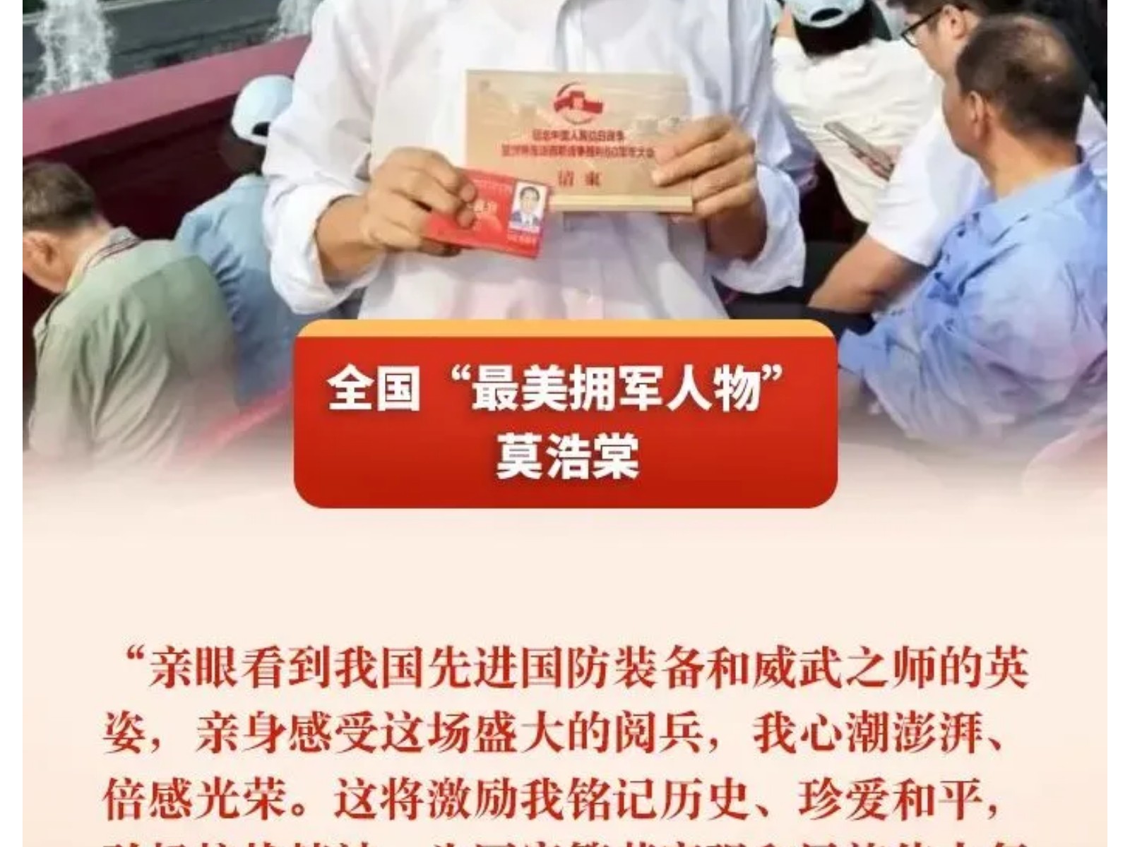 【最美擁軍人物】九三閱兵觀禮臺(tái)上的雙擁身影,他們是誰(shuí)? 發(fā)布時(shí)間:2025年09月19日 10時(shí)來(lái)源:本站原創(chuàng)瀏覽:15 人次